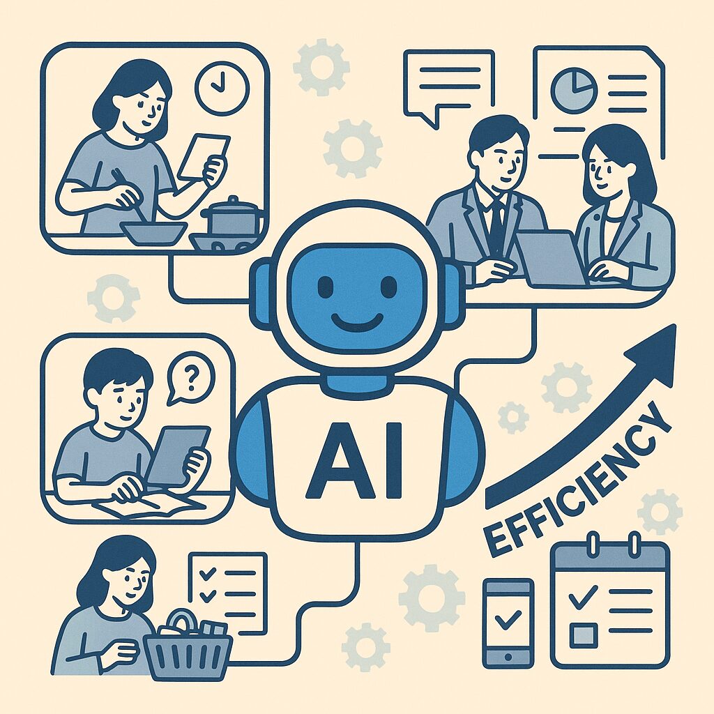 - 家庭・学校・買い物・仕事の現場で、AIアシスタントやエージェントは下書き、自動化、レコメンド、スケジューリングなどで「手間を減らす力」がある
